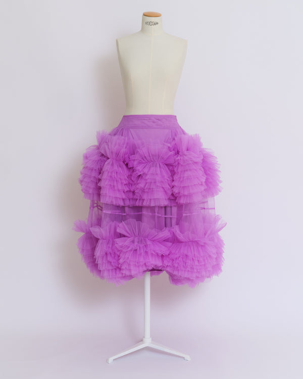 The Molly Goddard Made to Order service offers a limited selection of the most distinctive pieces from our runway collections, available made to order. These pieces reflect the highlights of the brand's history, showcasing the craftsmanship and signature techniques we've become known for. To inquire, please email our team at shop@mollygoddard.com.